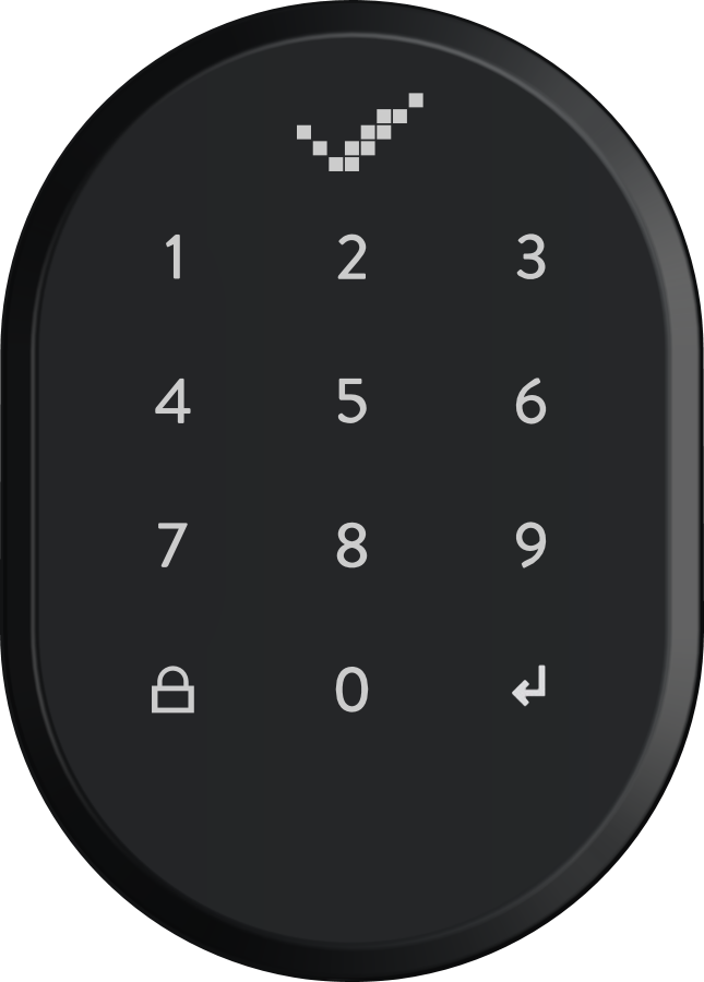 Wireless keypad mounts on the door exterior or wall and adds elegance with its touch interface.